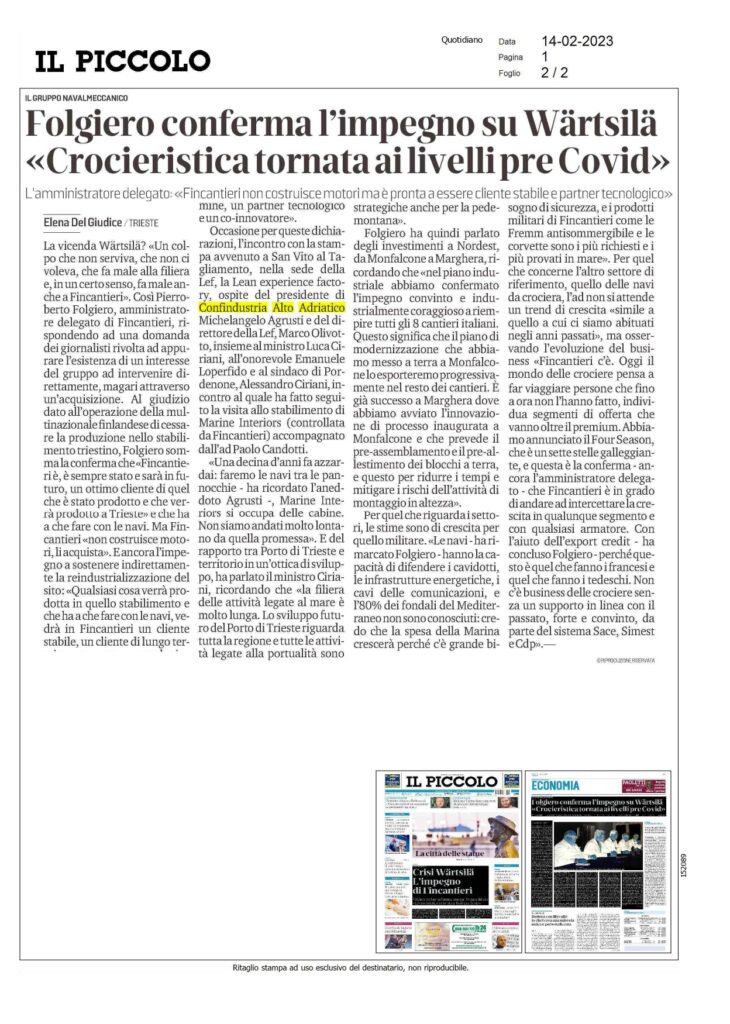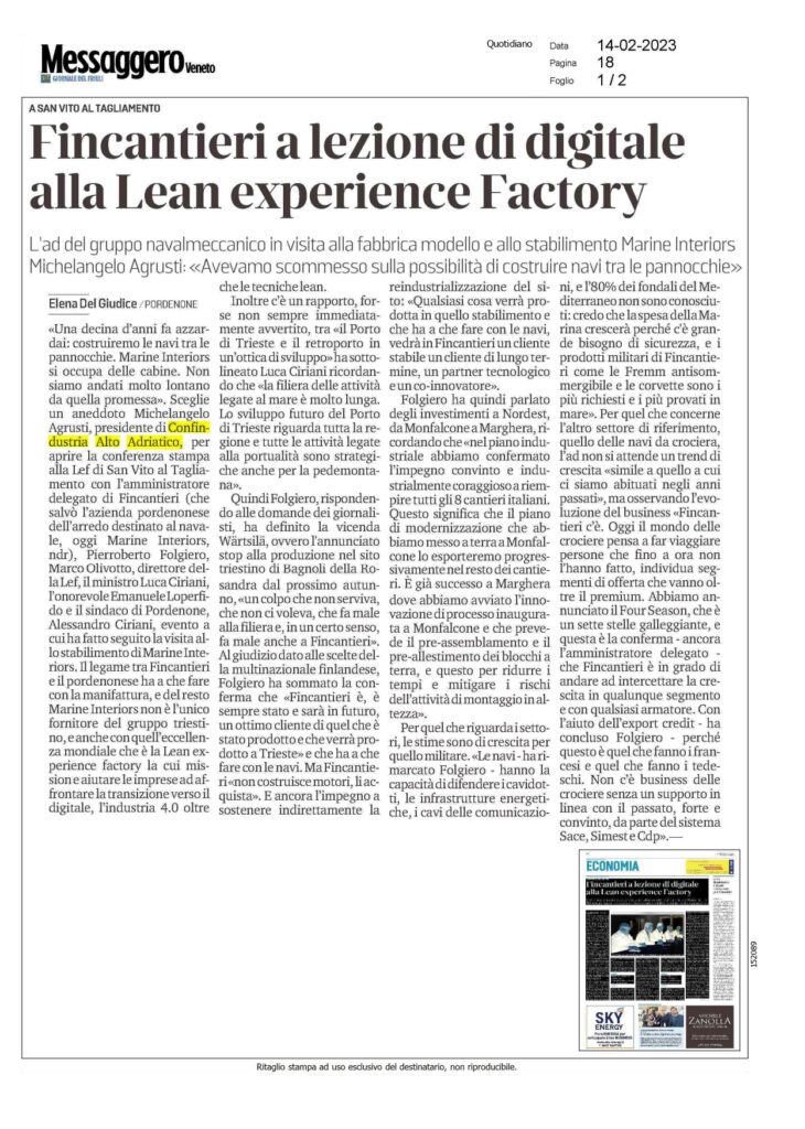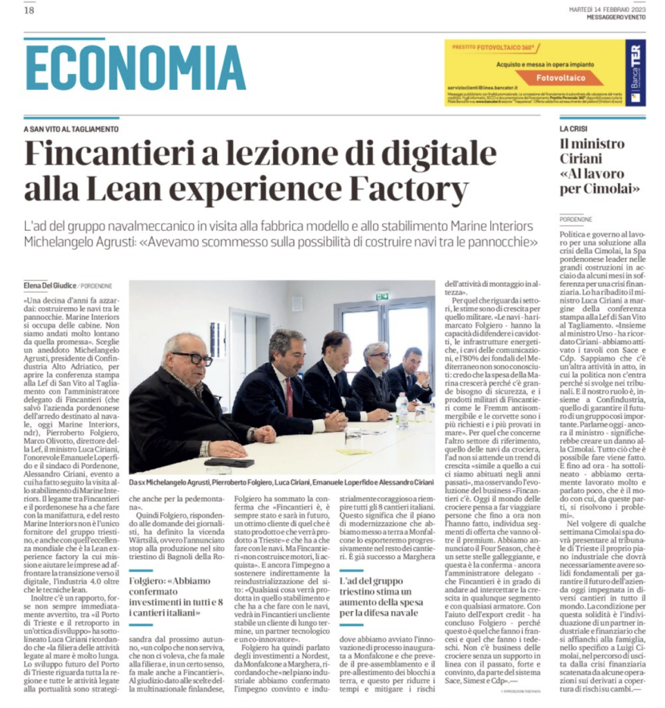 Rassegna stampa della visita di Fincantieri in azienda digitale modello