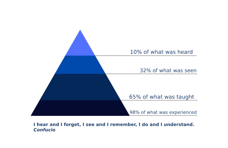 Experiential training involves learning based on the experience of real situations and practical exercises, in which participants have the opportunity to ‘learn by doing’ what they will then apply in the company.